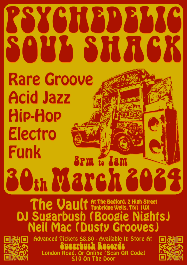 A brand new night hosted by hosted by Neil Mac & DJ Sugarbush, the mighty Dusty Grooves Sound System returns for a small, intimate gathering of friends and lovers of funky flavours and psychedelic soul.