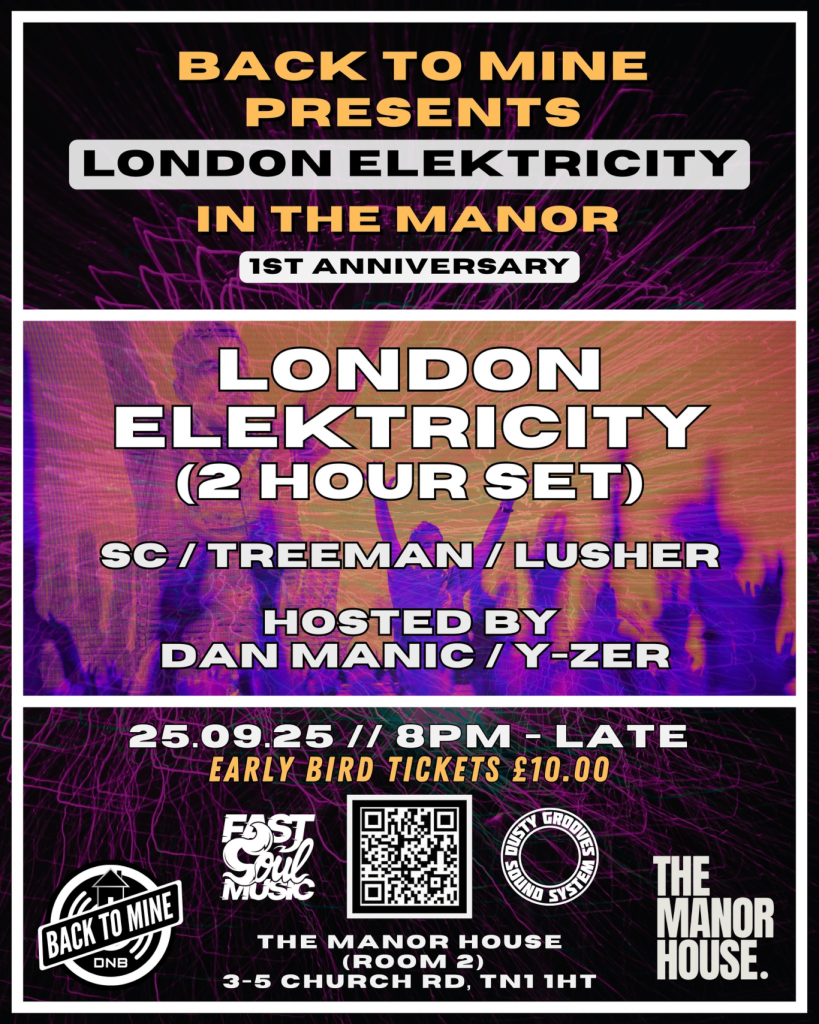 D&B royalty is coming to town for the Back To Mine first birthday bash! The legendary London Elektricity takes the helm with a 2-hour headline set, fully powered by the Dusty Grooves Sound System.
