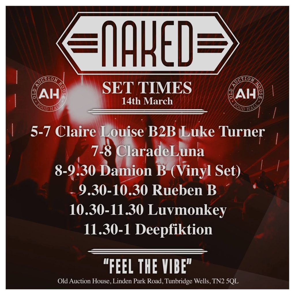 The Naked “Feel The Vibe” Crew return to the Auction House for the bi annual house party. Sound reinforced by the full DG system.