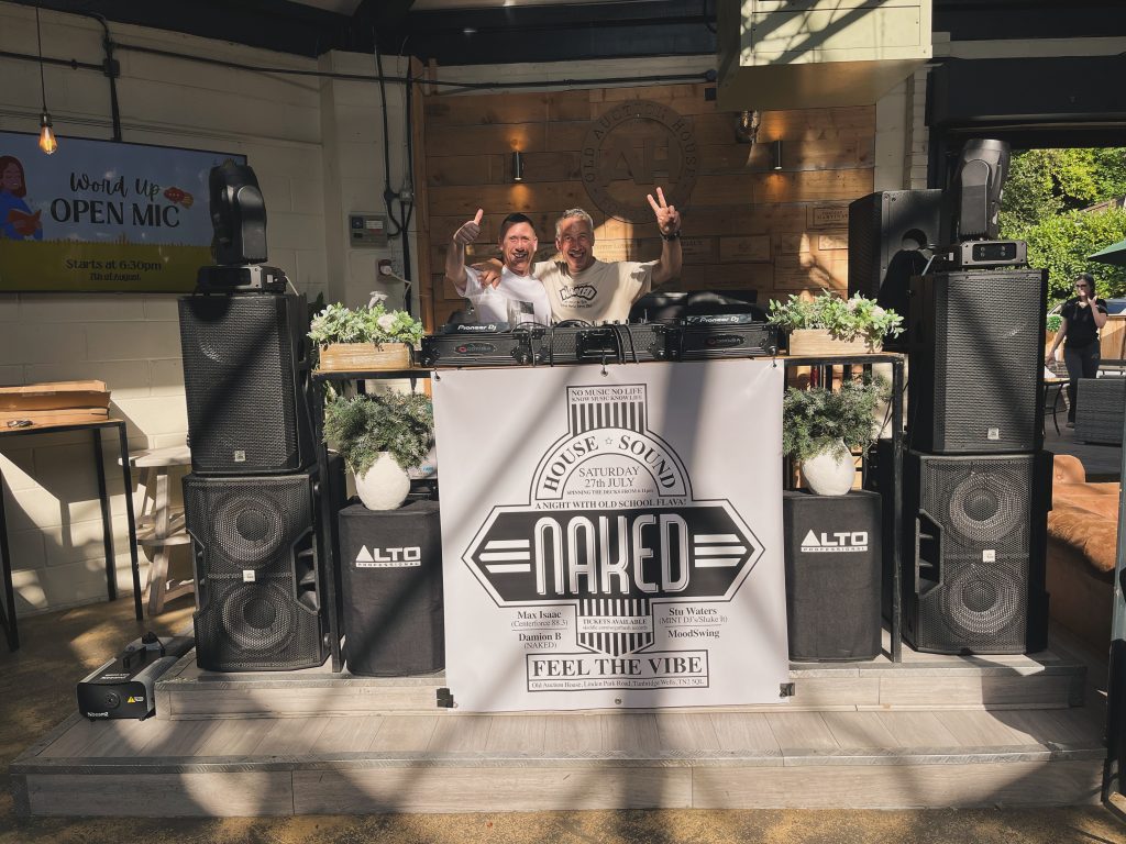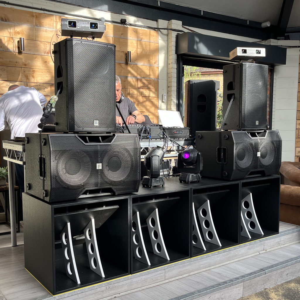 Available to hire as the full party package — sound system, lighting and DJs — or as sound reinforcement for your event.